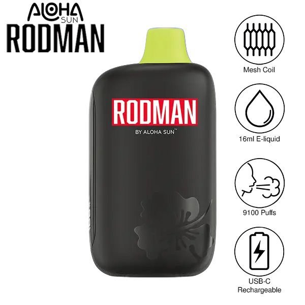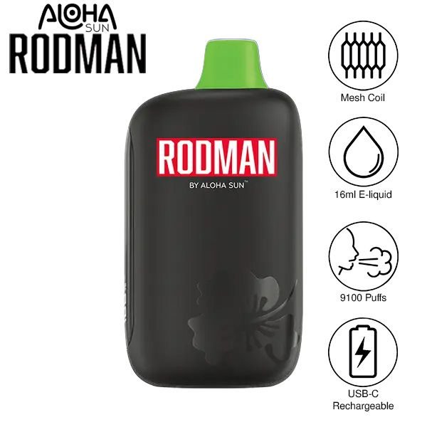 ALOHA SUN | RODMAN DISPOSABLE (PACK OF 10) | 16 ML / 9100 PUFFS | 50MG