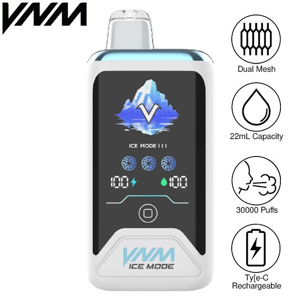 Elevate your vaping experience with the VNM Ice Mode Disposable Vape. Designed for maximum satisfaction, this device offers an impressive 30,000 puffs and features adjustable airflow for a customized hit. The dual mesh coils deliver exceptional flavor, while the digital display keeps you informed with a 4 level battery indicator. With hypercharged capabilities and adjustable ice levels, this vape is tailored for those who crave intensity.
